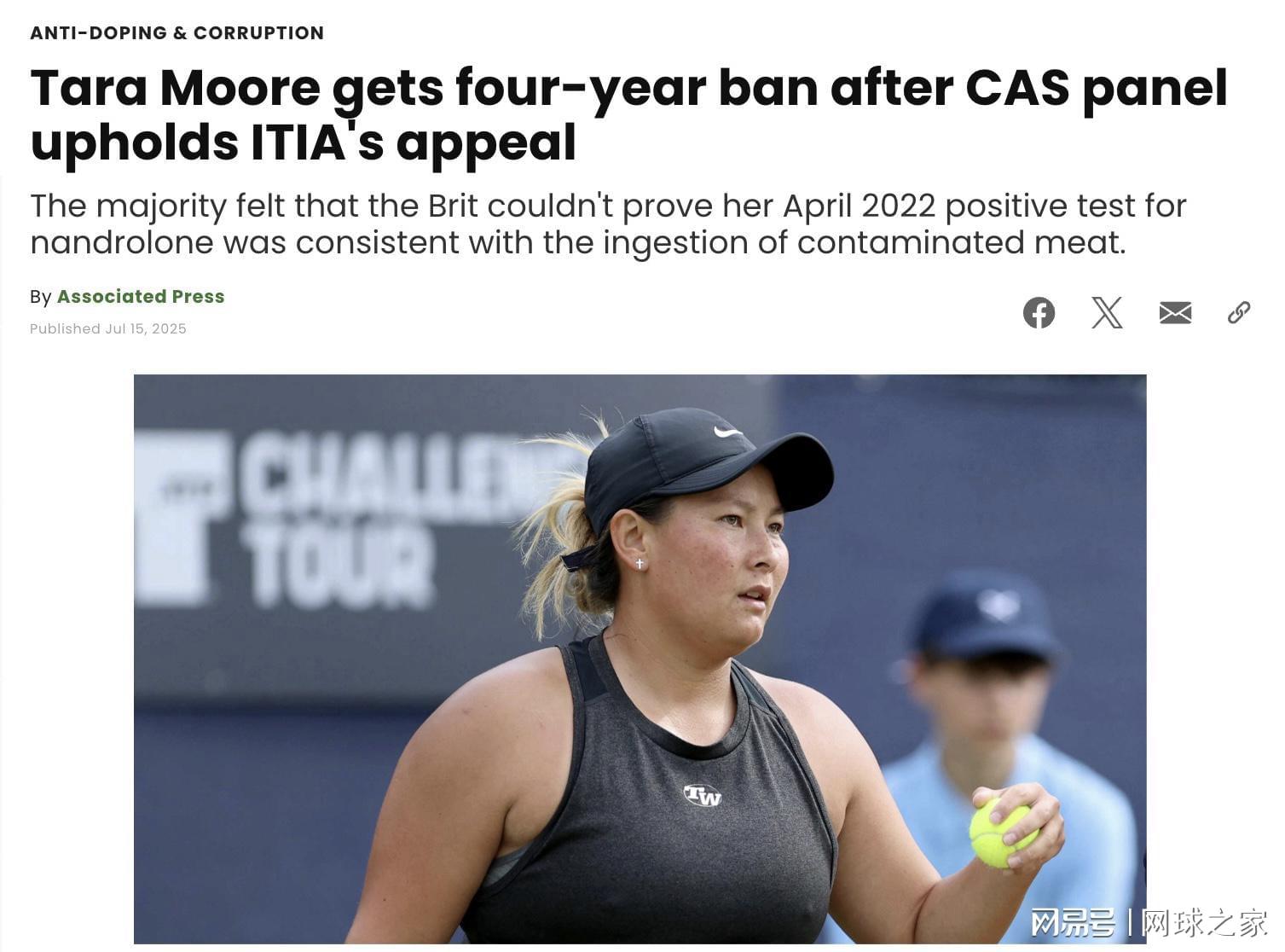 kaiyun-从“无罪”到禁赛四年:英国网球选手摩尔向WTA索赔2000万美元
